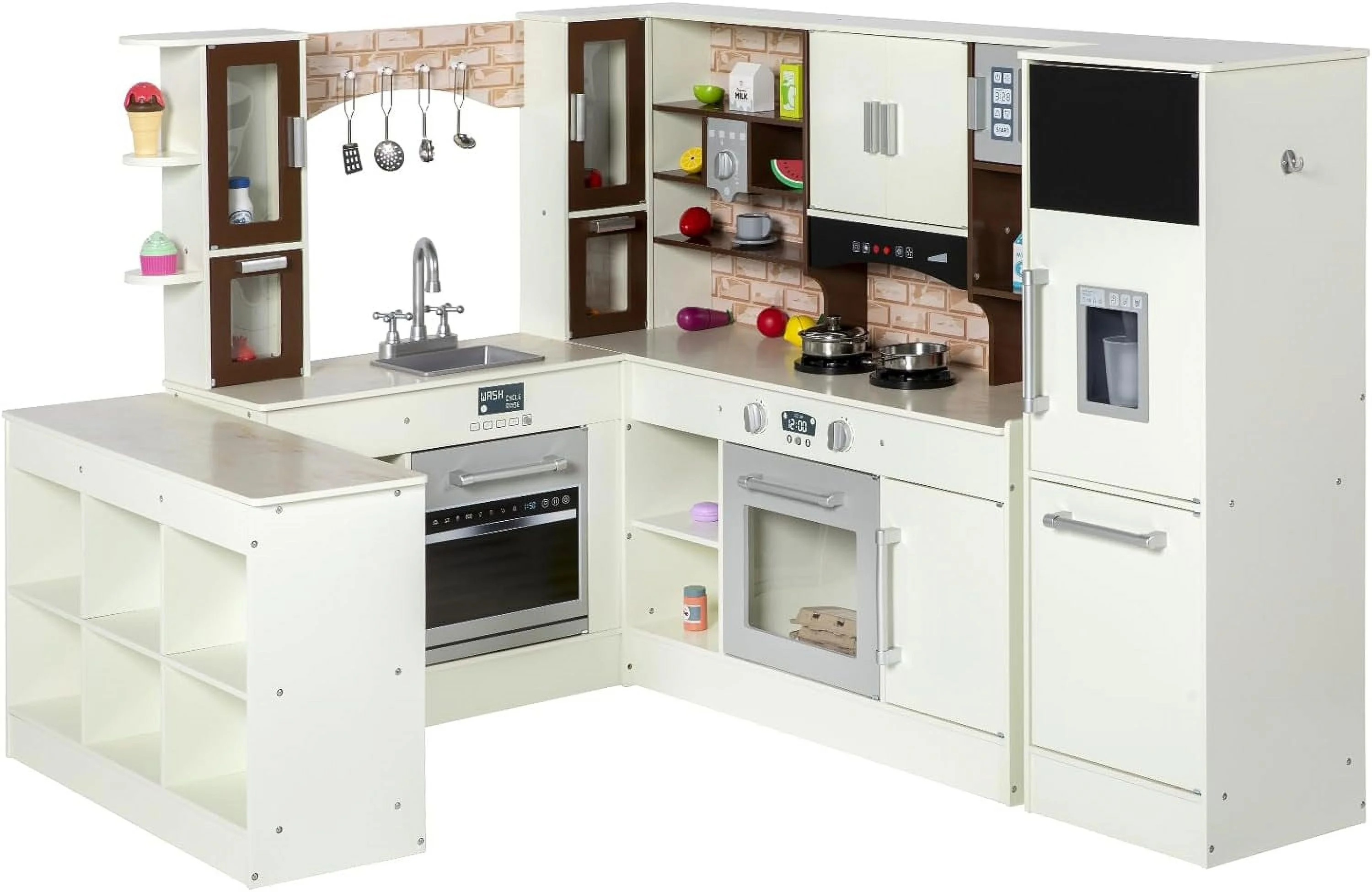 BRINJOY 3-Piece Kids Kitchen Playset, Walk-in Wooden Play Kitchen Set for Toddlers, Modular Pretend Play Kitchen w/Light&Sound, Large Corner Kitchen Cooking Toy w/Coffee Capsule, Gift for Girls Boys
