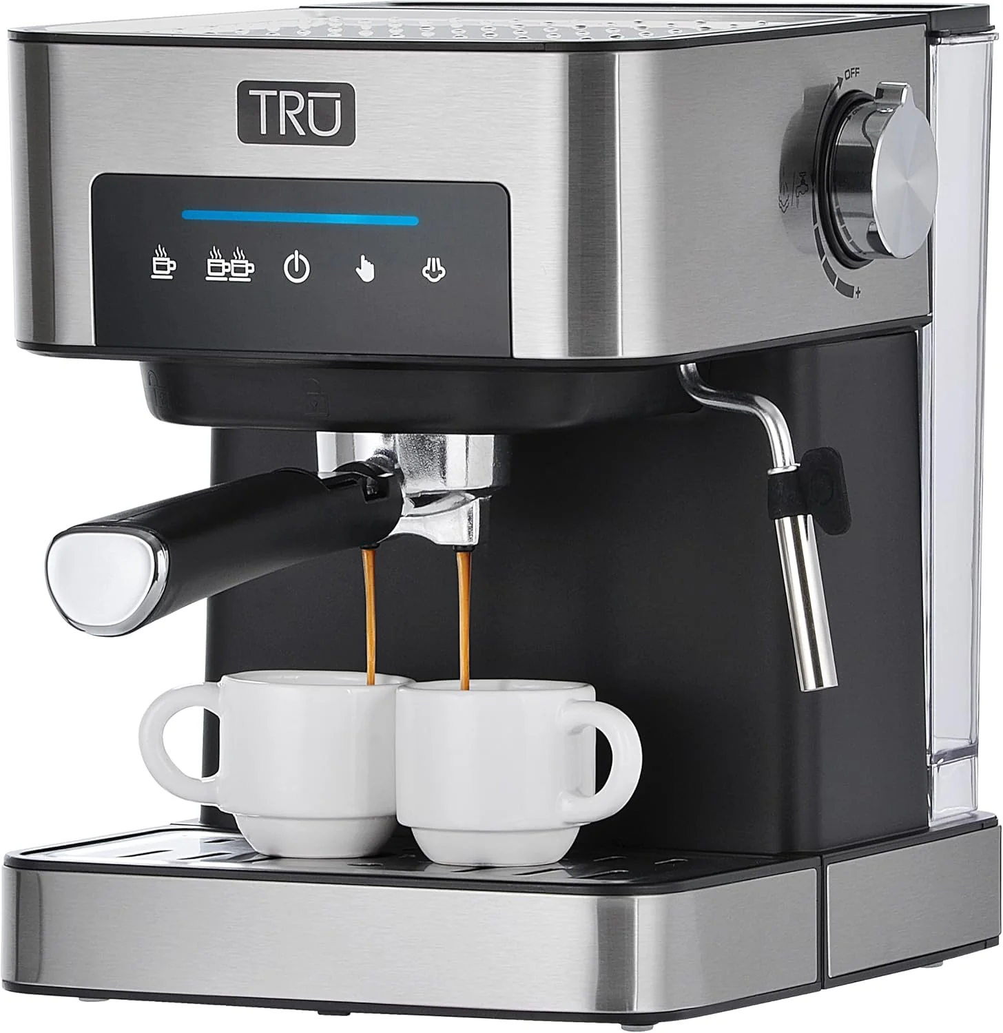 Tru Touch Screen Espresso Maker - Espresso Machine for Cappuccinos, Lattes & More - Includes Steam Wand, Cup Warmer & Drip Tray - Espresso Coffee Machine for the Kitchen - 56-Ounce Water Tank