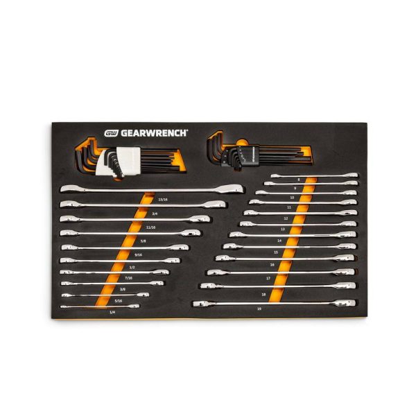 1008245829 44pc 90T SAE/Metric Combination Ratcheting Wrench Long Arm Hex Key Set with EVA Foam Tray