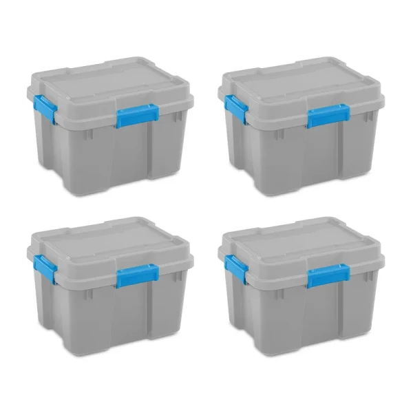20 Gallon Plastic Home Storage Container Tote Box, Gray/Blue, (4 Pack)