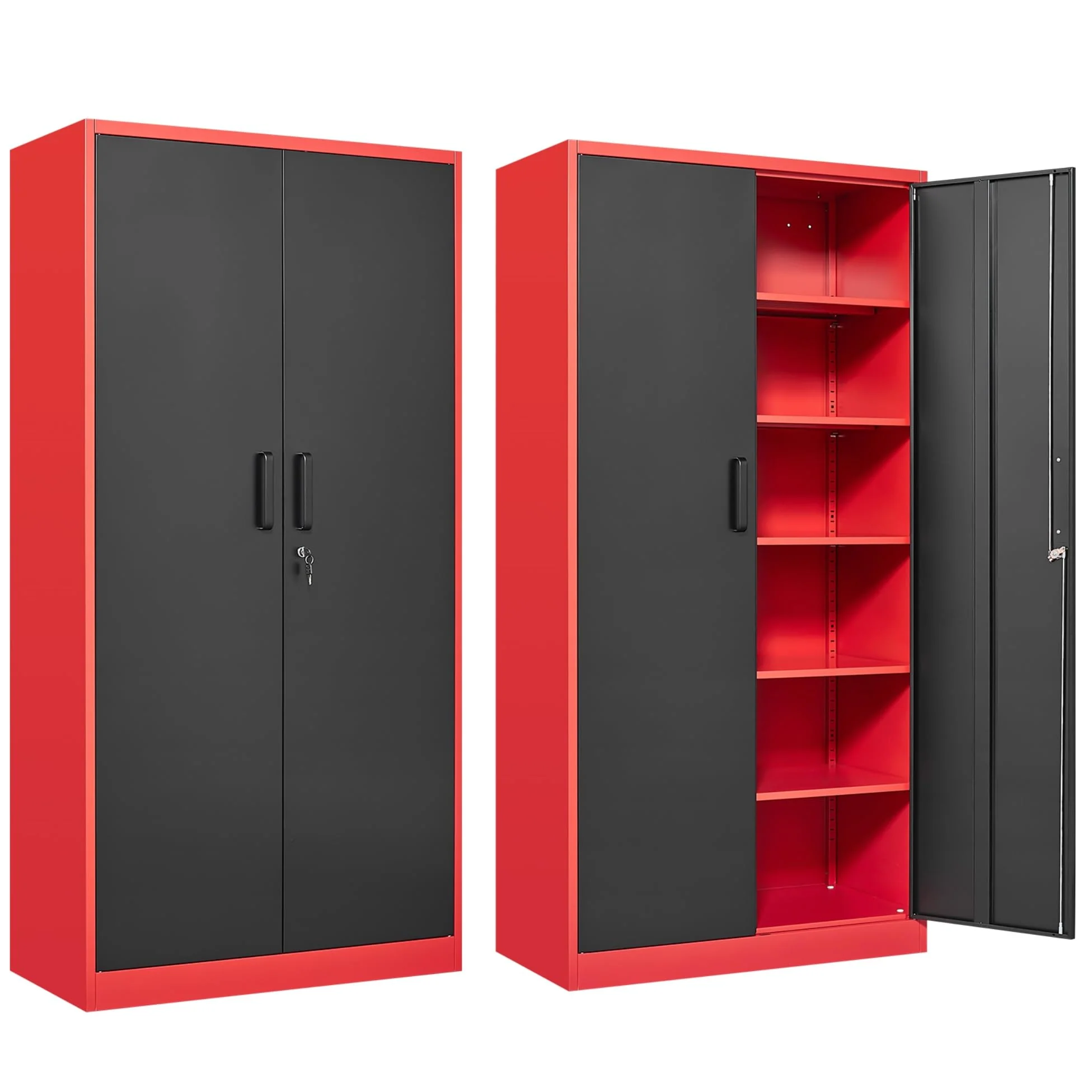Garage Storage Cabinet with 5 Adjustable Shelves,Metal Storage Cabinet with Lock,Red Black Metal Cabinet with Locking Doors,Steel Cabinet,71" Lockable Storage Cabinet for Home,Office,Garage Cabinets