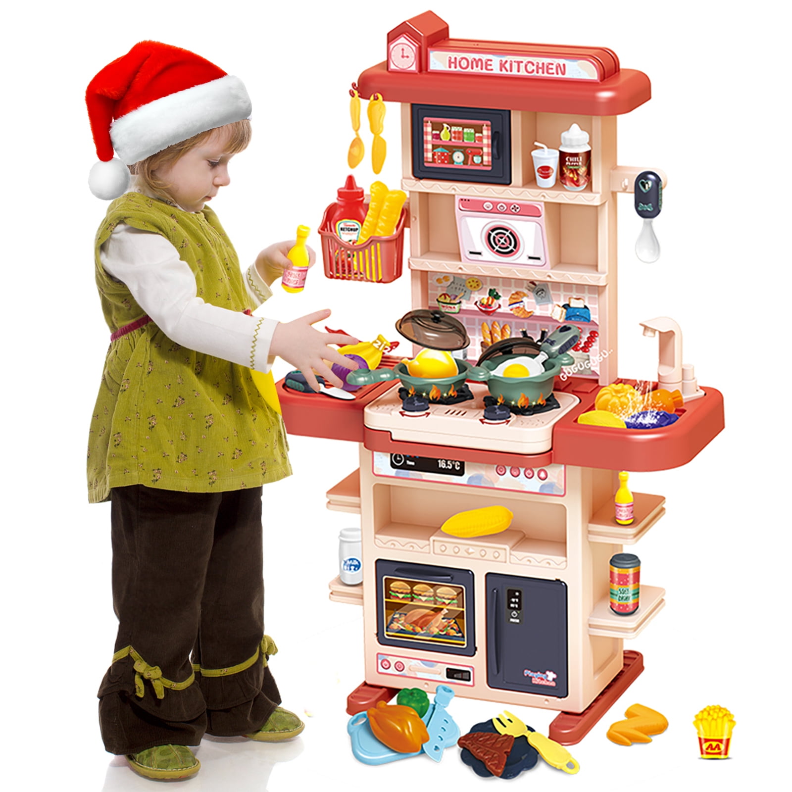 PayUSD Play Kitchen Playset for Kids with Pretend Food 29 Inch Toddler Kitchen Realistic Lights and Sounds Pretend Play Toy Set for Girls Boys Christmas Birthday Gift, Orange