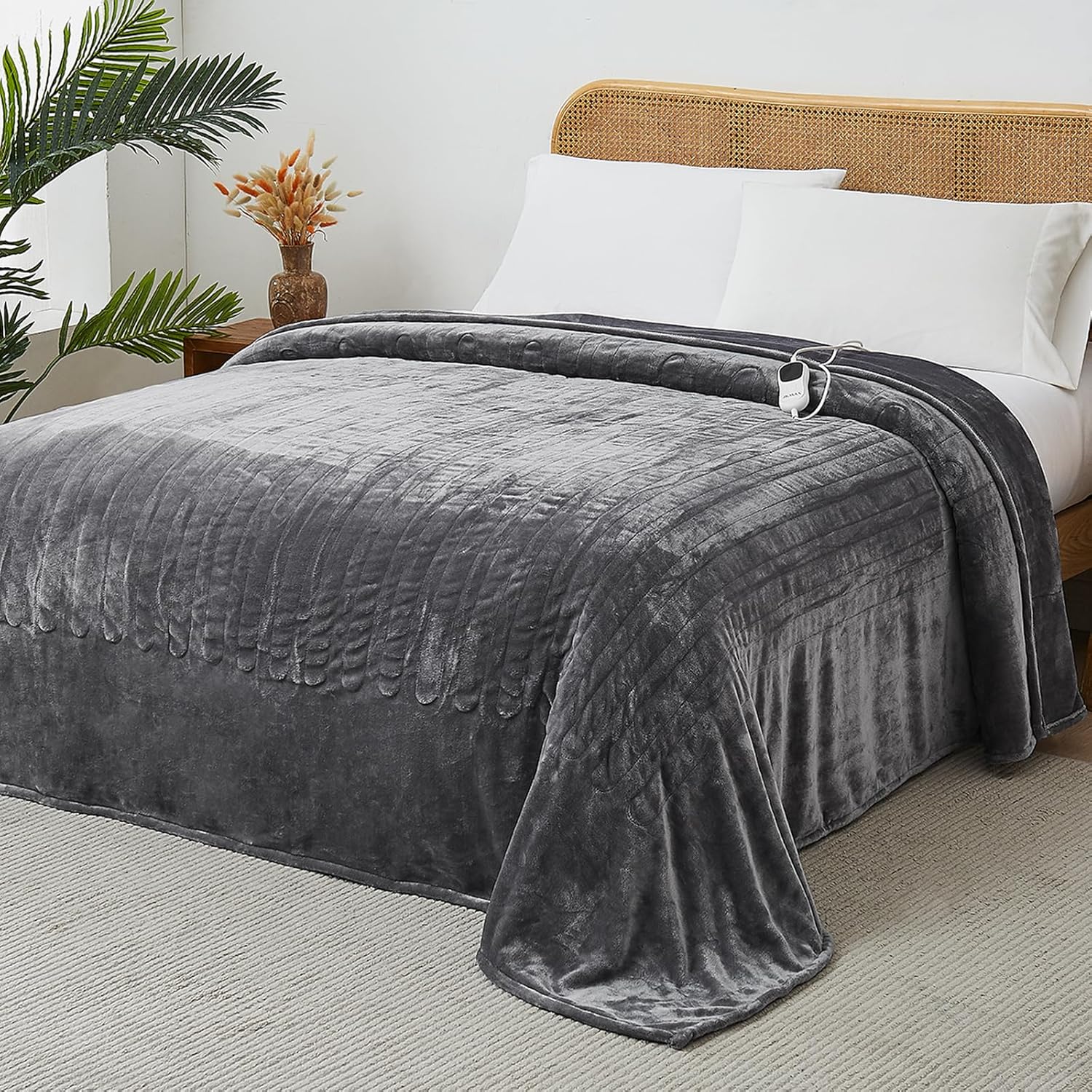 JKMAX Elektrisch beheizte Heizdecke, beheizte Bettdecke, 10 Heizstufen, 8 Stunden, automatische Abschaltung, schnelle Heizung, ETL-zertifizierte Heizdecke mit ultraweichem Überhitzungsschutz, volle