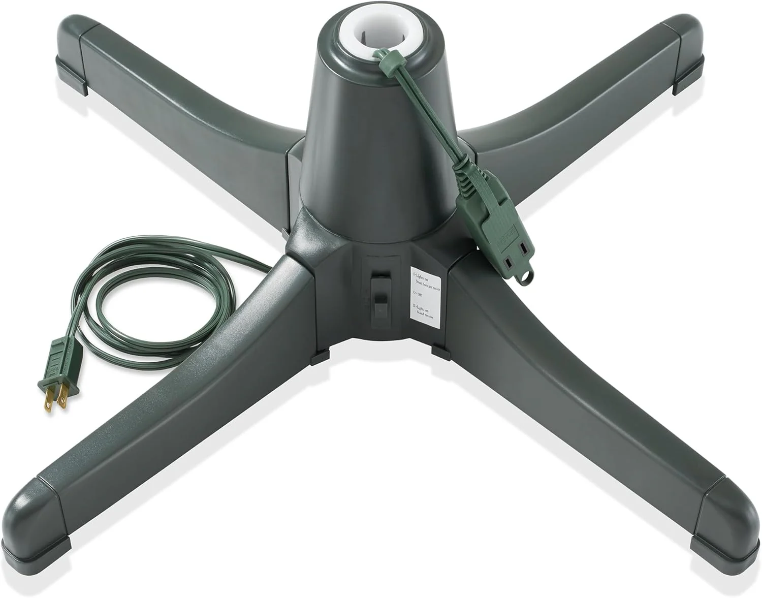 Casafield 360-Degree Rotating Christmas Tree Stand - Adjustable Revolving Base for Up to 7.5 FT Artificial Tree with 3 Built-in Electrical Outlets, Green