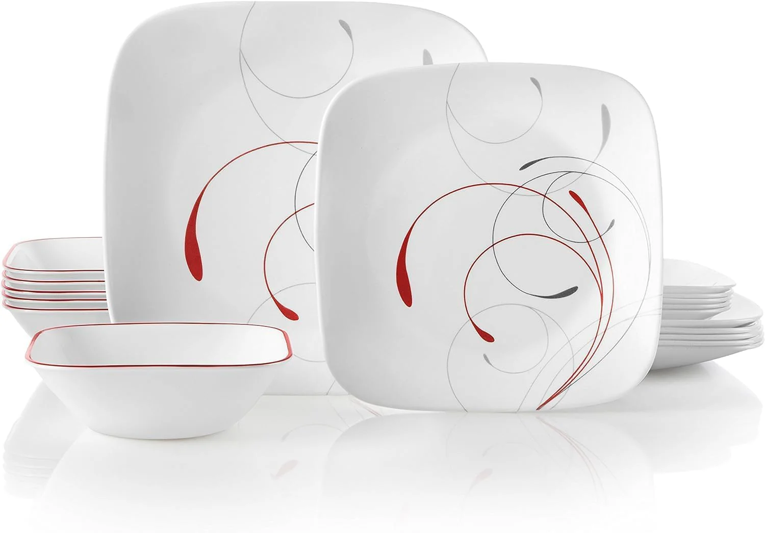 Corelle Vitrelle 18-Piece Service for 6 Dinnerware Set, Triple Layer Glass and Chip Resistant, Lightweight Square Plates and Bowls Set, Splendor