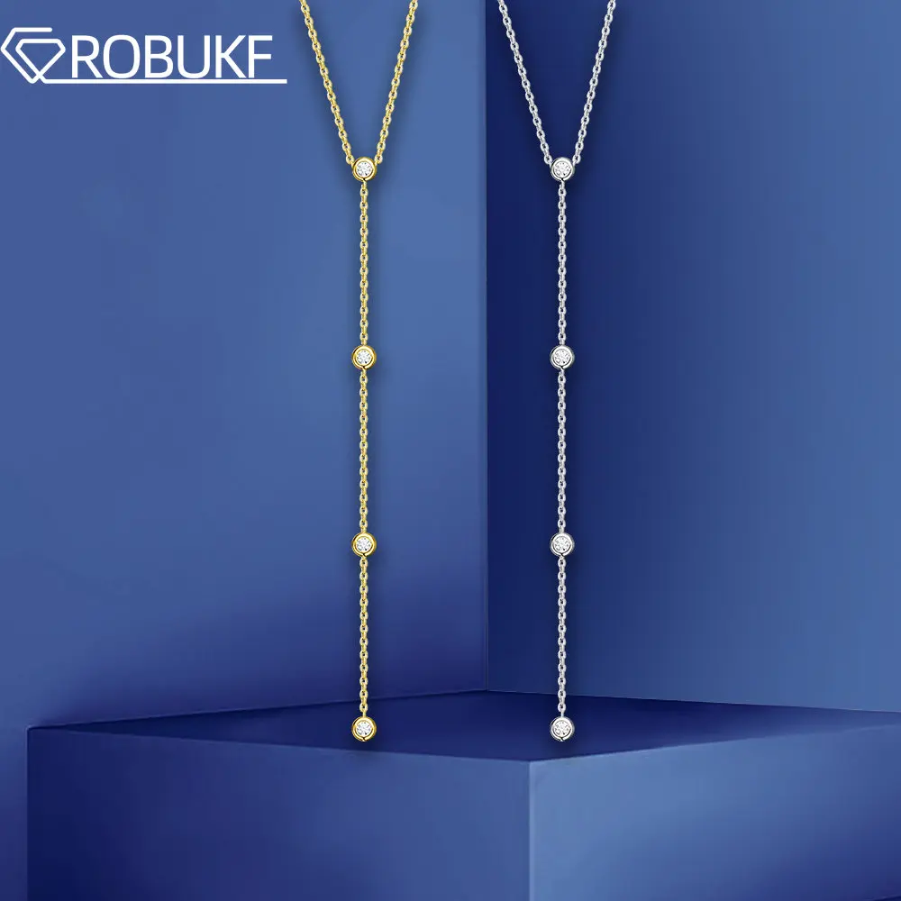 Moissanite Lariat Pendant Necklace For Women 18K White Gold Plated 1.2ct 12 Stones 100% 925 Silver Round Cut Moissanite Diamond