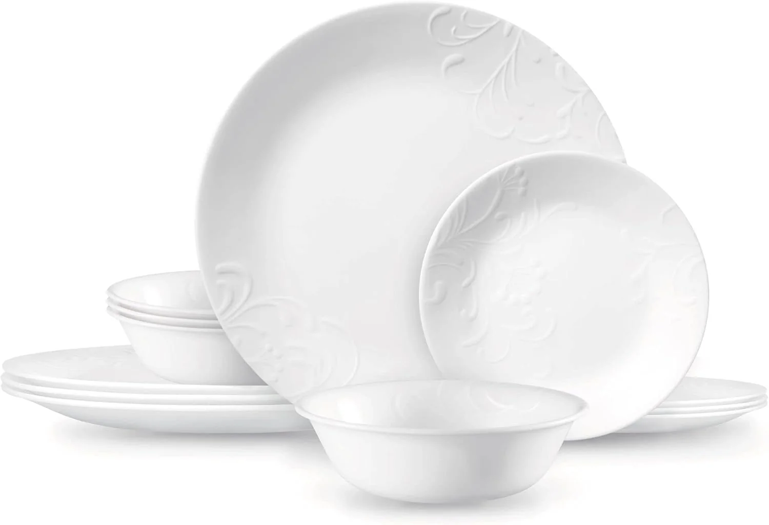 Corelle Madeline Embossed 12 Piece White Dinnerware Set