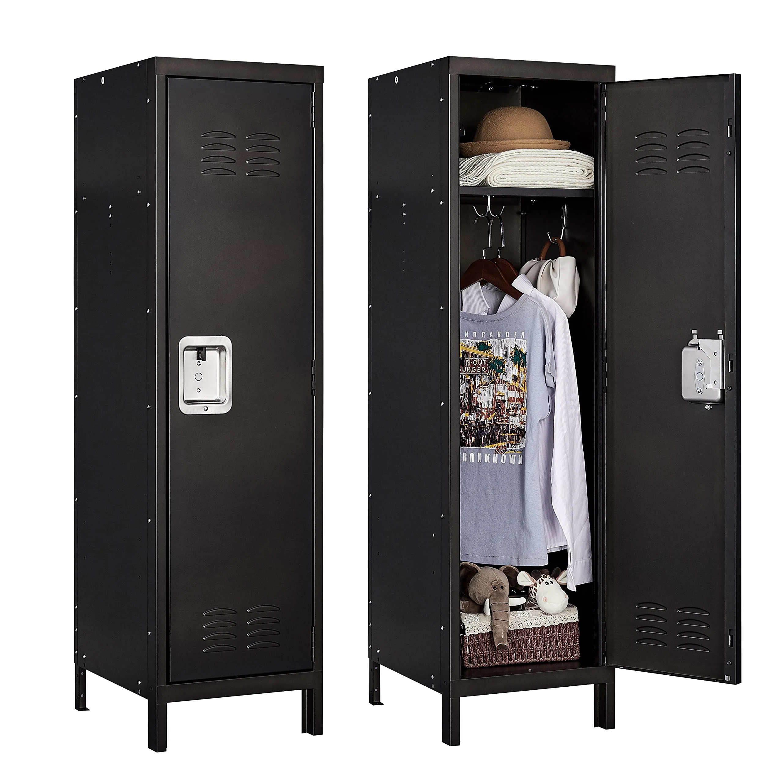 SISESOL Vintage Metal Locker,Storage Locker,Retro Black Single Locker with Hooks for Employees,Steel Locker for Home, Office,Gym,Old School Lockers Storage